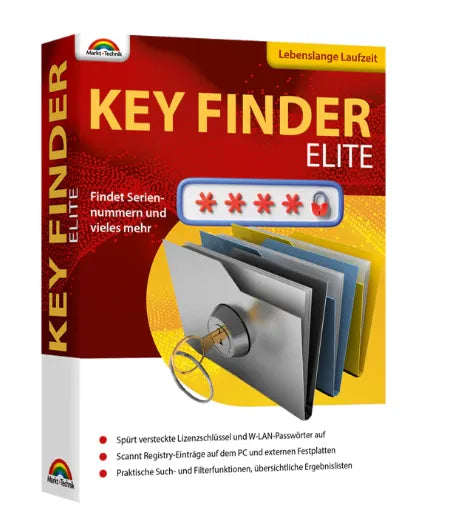 KeyFinder Elite scannt Ihren PC automatisch und zeigt alle gespeicherten Lizenzschlüssel und WLAN-Passwörter an – zuverlässig und übersichtlich.